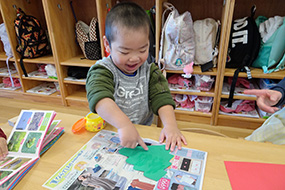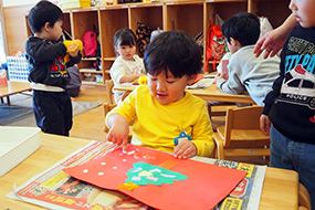 折り紙を貼ったり、