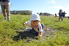 土や草に触れています。