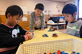 ラキューでこまをつくったよ」