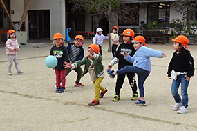 ドッジボールで、