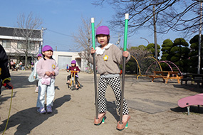 竹馬の練習中!