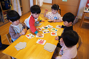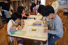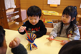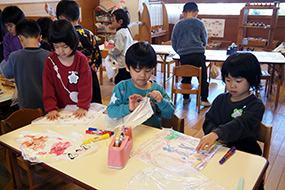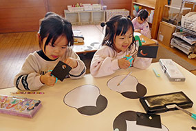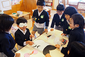 福笑いを楽しむ年長さん。