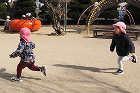 園庭を駆け回っています。
