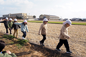年長さんが、近くの畑へ