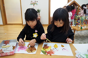 色とりどりの落ち葉を使って、