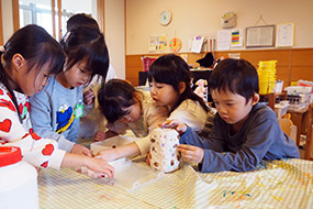 花びんをつくっているよ」