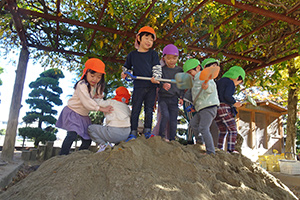 お砂場は異年齢交流の場