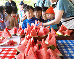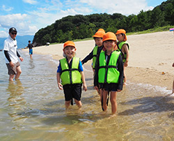 波打ち際で遊んだり、すいか割りに挑戦したり・・・