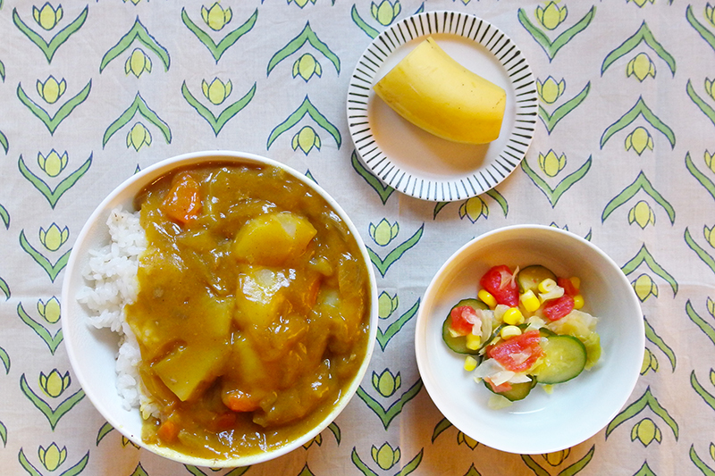 カレーライス カラフルサラダ フルーツ(バナナ) \ 10月9日 /