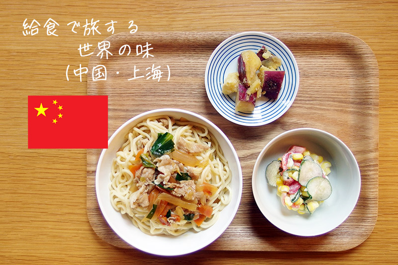 上海風焼きそば(上海の料理) コーンサラダ さつま芋のバター醤油煮 \ 10月15日 /