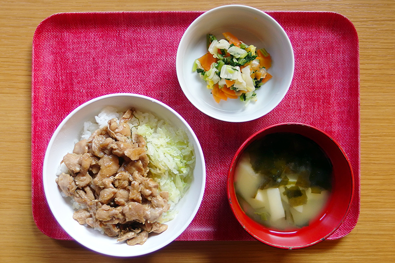 焼き鳥丼 小松菜と白菜の和え物 ワカメのみそ汁 \ 10月22日 /