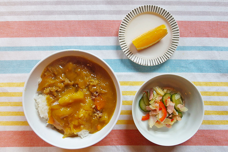 カレーライス カリカリベーコンサラダ フルーツ(オレンジ) \ 9月17日 /