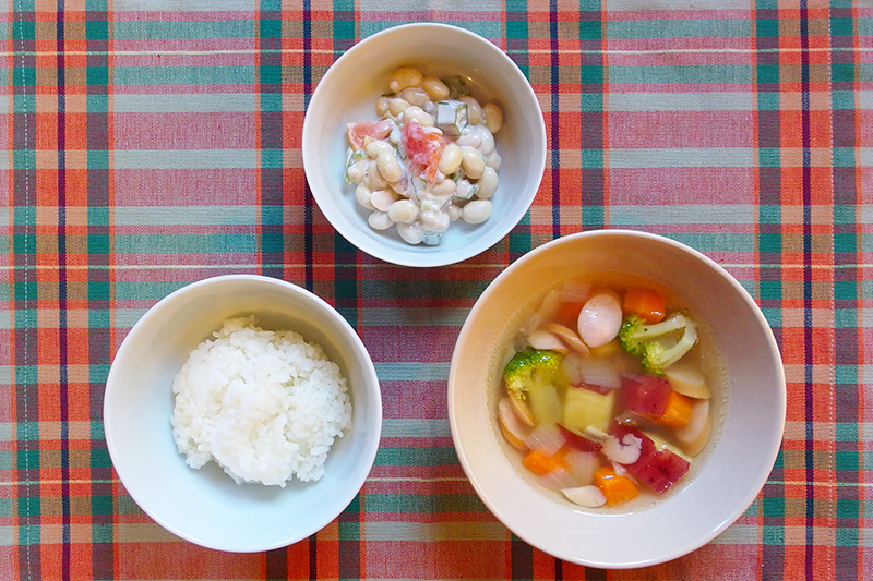 ごはん 秋野菜のポトフ(旬メニュー) 大豆サラダ \ 9月19日 /
