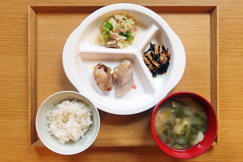 麦入りごはん 鶏肉の塩こうじ焼 ツナとキャベツのサラダ ひじき煮(海藻メニュー) じゃがいものみそ汁 \ 9月26日 /