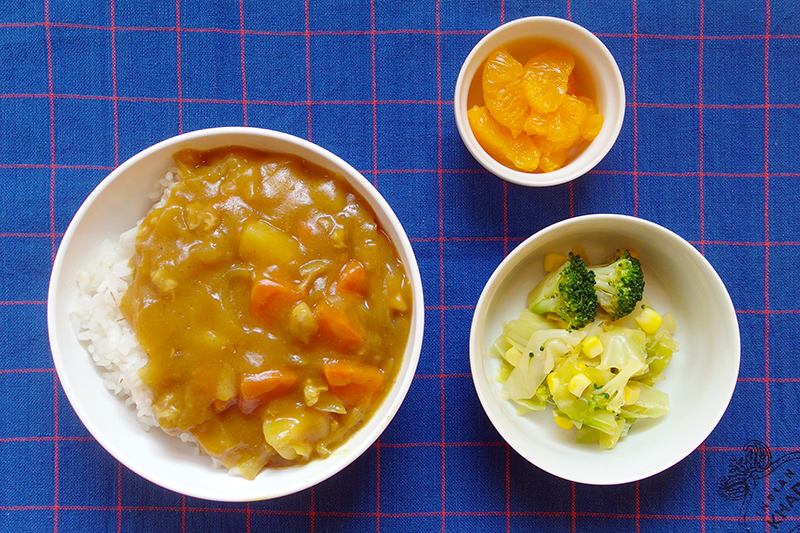 チキンカレー ブロッコリーサラダ フルーツ(みかん缶) \ 1月13日 /