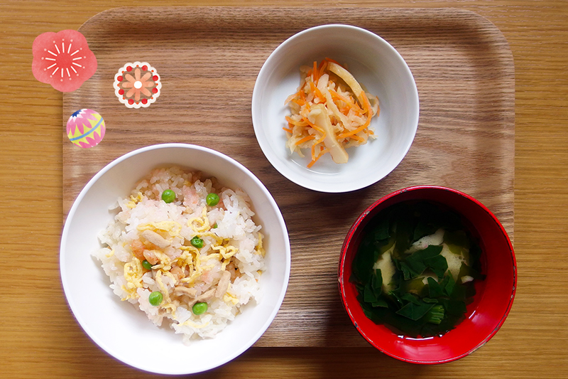 新春ちらし寿司 さつま揚げと切干大根の和え物 花麩のすまし汁 \ 1月14日 /
