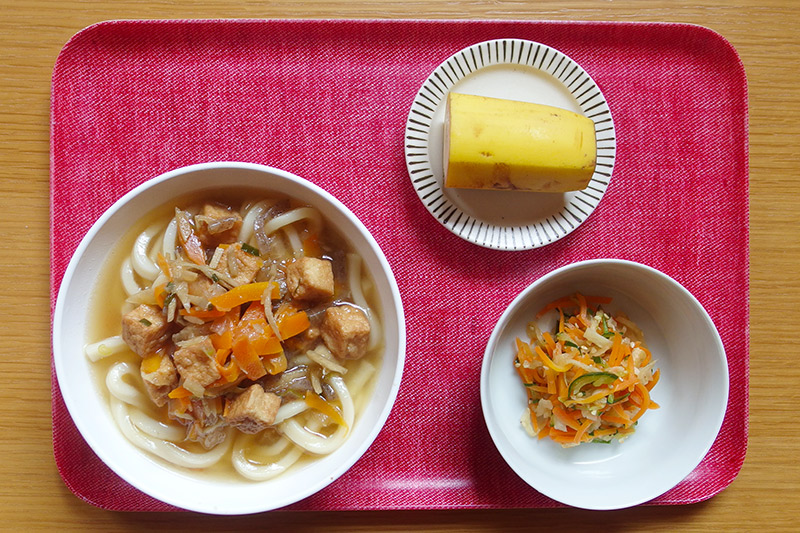 けんちんうどん 切干大根のハリハリ和え フルーツ(バナナ) \ 1月21日 /
