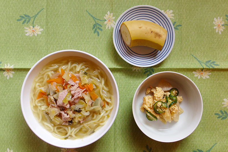 塩ラーメン 大根ときゅうりの菜種和え フルーツ(バナナ) \ 1月28日 /