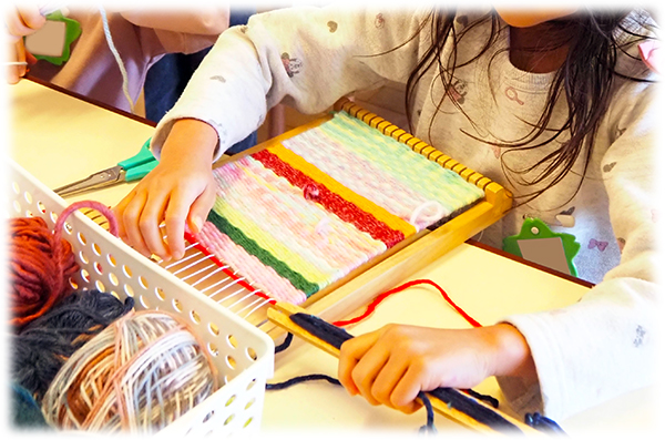 年長組では今、織り機を使った