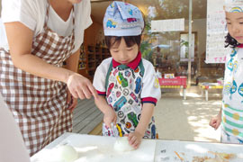保育者やお手伝いのお母さんの指南を受けながら…