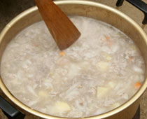 湯気を上げぐつぐつ茹っているから、恐る恐る。