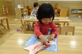こいのぼり製作をする2歳児さん。
