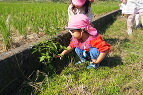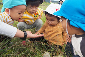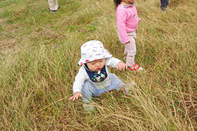 土や草に触れています。