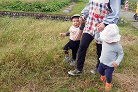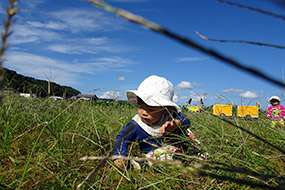 近くの畑へ遊びに行きました。