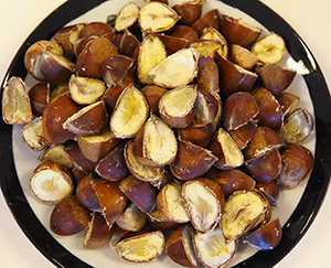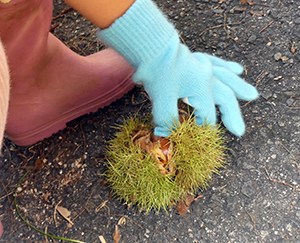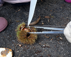 手だとチクチクするな。 火箸とスコップを使ってみよう。