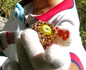 「ハリネズミみたい」「頭に落ちてこないでねー」