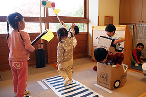 遊ぶ中で、ごっこ遊びなどの