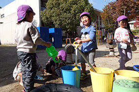 お砂場は異年齢交流の場