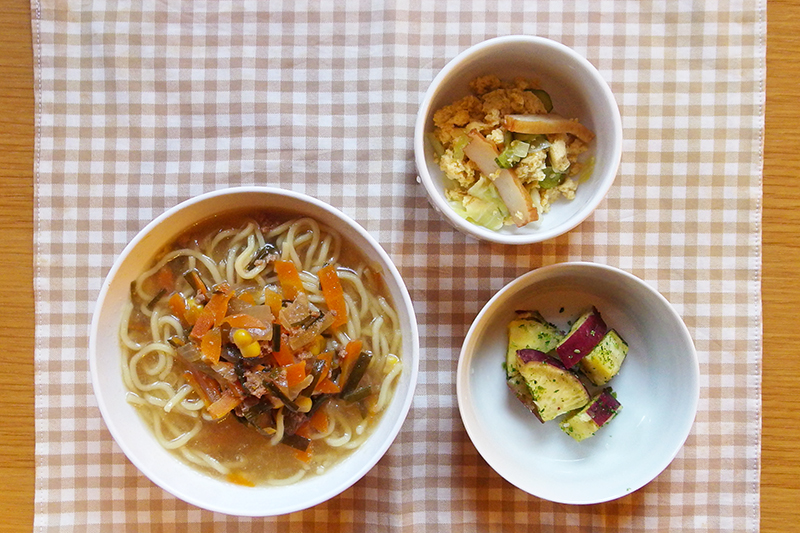 とり醤油ラーメン 胡瓜とコーンのさっぱり和え 大学かぼちゃ \ 10月2日 /