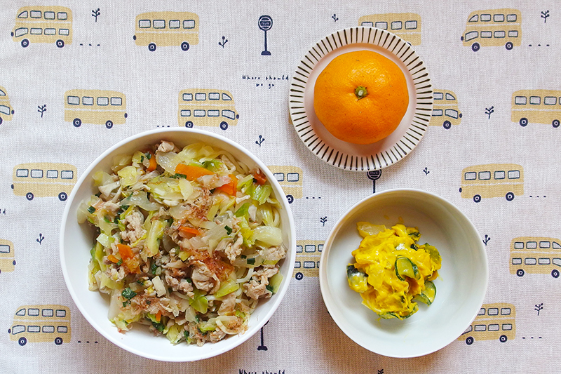 塩焼きそば パンプキンサラダ フルーツ(みかん) \ 12月22日 /