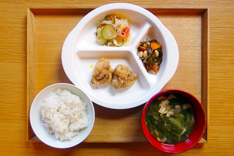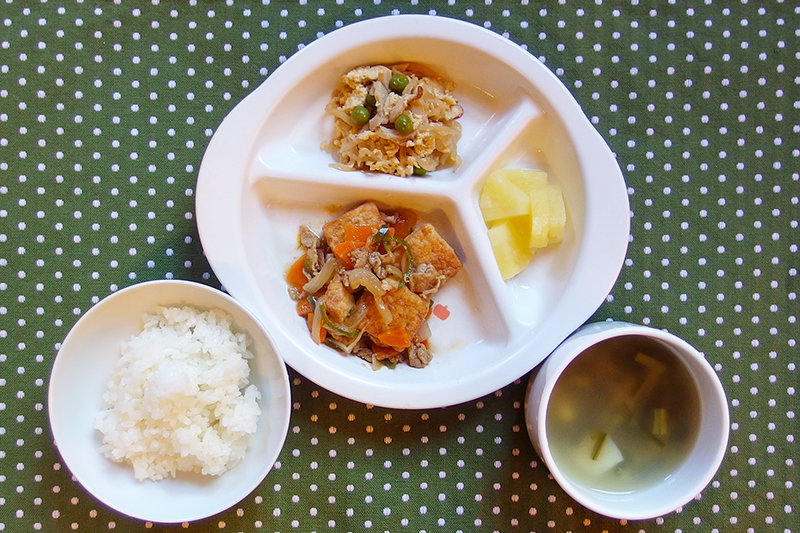 ![]() ![]() 子どもたちが毎日楽しみにしている給食の時間♪ 今日はこんなごはんを食べましたよ! ★不定期更新になる場合がありますので、ご了承ください。 < 令和7年9月 > \ 9月30日 / ![]() ごはん 炒り豆腐 ブロッコリーのおかか和え 白菜のみそ汁 フルーツ(バナナ) \ 9月29日 / ![]() 麦入りごはん 鶏肉の塩こうじ焼 ツナとキャベツのサラダ ひじき煮(海藻メニュー) じゃがいものみそ汁 \ 9月26日 / ![]() セルフハンバーガー(アメリカの料理) フライドポテト キャベツのスープ <ひとこと> 年長&年中児は具材を子どもたちが挟みました。 自分で作った特別な一品に、 にこにこ笑顔でかぶりついていました! \ 9月25日 / ![]() 麦入りごはん 鶏肉のオイスターソース焼 かぼちゃの甘煮 中華サラダ 中華スープ \ 9月24日 / ![]() 他人丼 ほうれん草と白菜のごま和え えのき茸のみそ汁 \ 9月22日 / ![]() ごはん 秋野菜のポトフ(旬メニュー) 大豆サラダ \ 9月19日 / ![]() ロールパン ツナのナポリタンスパゲティ 野菜サラダ ふわふわスープ \ 9月18日 / ![]() カレーライス カリカリベーコンサラダ フルーツ(オレンジ) \ 9月17日 / ![]() 麦入りごはん 豚肉と根菜の煮物 もやしとブロッコリーのしらす和え ほうれん草のみそ汁 フルーツ(りんご) \ 9月16日 / ![]() ごはん チーズハンバーグ ポテトフライ 切干大根サラダ コーンクリームスープ フルーツヨーグルト \ 9月12日 / ![]() ごはん 白身魚の甘辛煮 ベーコンと野菜のソテー 蒸さつま芋 豆腐のみそ汁 \ 9月11日 / ![]() きのこの炊き込みごはん 肉じゃが ちくわとほうれん草のソテー なすの味噌汁 フルーツ(パイン) \ 9月10日 / ![]() ごはん サケの塩焼 ウインナーとチンゲン菜のソテー 高野豆腐の煮物 かぼちゃのみそ汁 \ 9月9日 / ![]() 豚丼 切干大根のハリハリ和え(カミカミメニュー) なすびのみそ汁 \ 9月8日 / ![]() ごはん チキンソテートマトソース さつま芋の甘煮 ブロッコリーサラダ ピーマンのスープ \ 9月5日 / ![]() 麦入りごはん 鶏肉の香草バター焼 粉ふき芋 野菜サラダ 豆腐のスープ \ 9月4日 / ![]() サラダうどん ひじきと高野豆腐の煮物(海藻メニュー) フルーツ(梨) \ 9月3日 / ![]() 麦入りごはん さばの旨煮 チーズかぼちゃ 白菜とブロッコリーのごま和え なすびのみそ汁 \ 9月2日 / ![]() ごはん 家常豆腐(厚揚げと野菜の中華炒め) 切干大根の卵とじ 中華スープ フルーツ(パイン) \ 9月1日 / ![]() 麦入りごはん フライドチキン 野菜サラダ こんぶ豆(海藻メニュー) 小松菜のみそ汁 ![]()